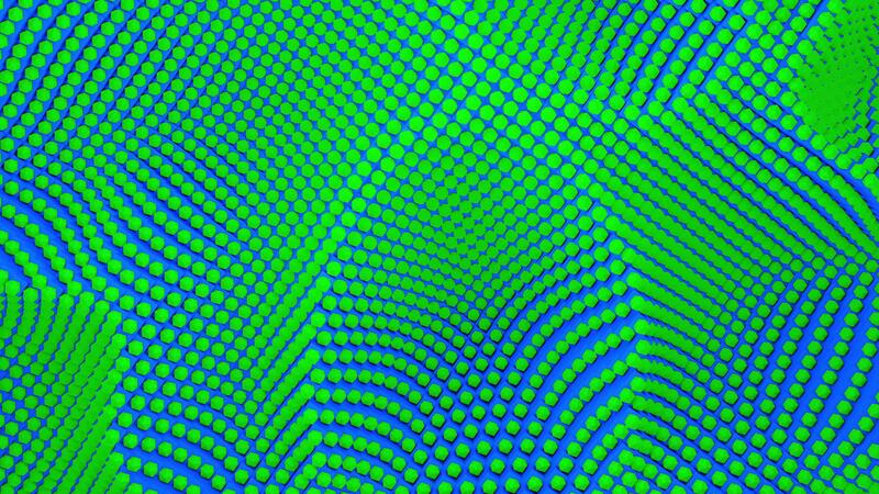 Green and blue background.Design. Small green and blue circles made in animation move around creating patterns . Pro Video