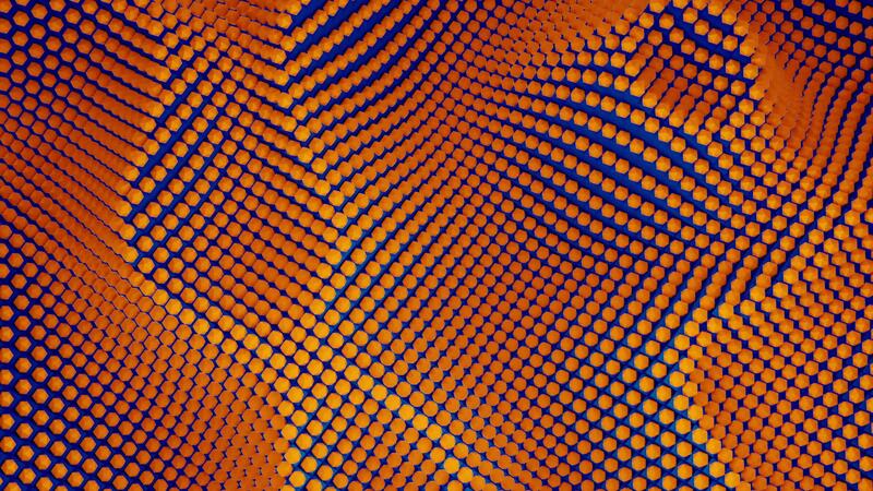 Orange bright convex texture moving in waves, seamless loop. Design. Grainy surface spinning and transforming. Pro Video