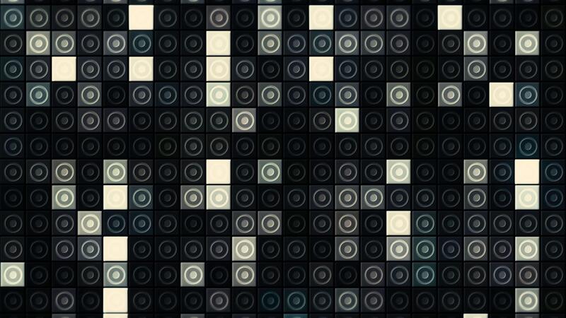 Abstract black and white checkered background. Motion. Geometric pattern with blinking monochrome squares and circles. Pro Video