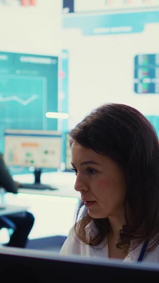 Vertical Company analyst reviewing infographics progress and success to help with achieving strategic objectives in a competitive business environment. Employee improving the workflow. Camera B. Pro Video