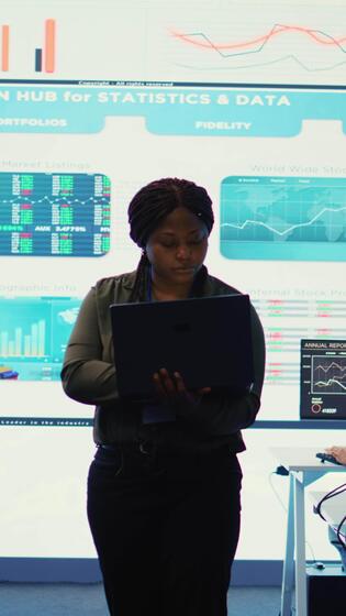 Vertical Business analyst looking into statistics and reports to detect any obstacles within the project structure, preparing solutions to ensure productivity. Manager studies numbers. Camera B. Pro Video