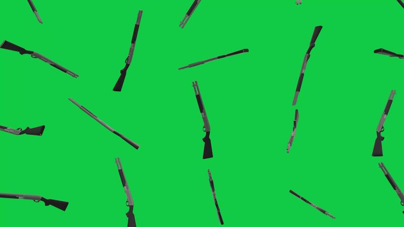 3d shotgun falling and rotating loop animation on green screen background Free Video