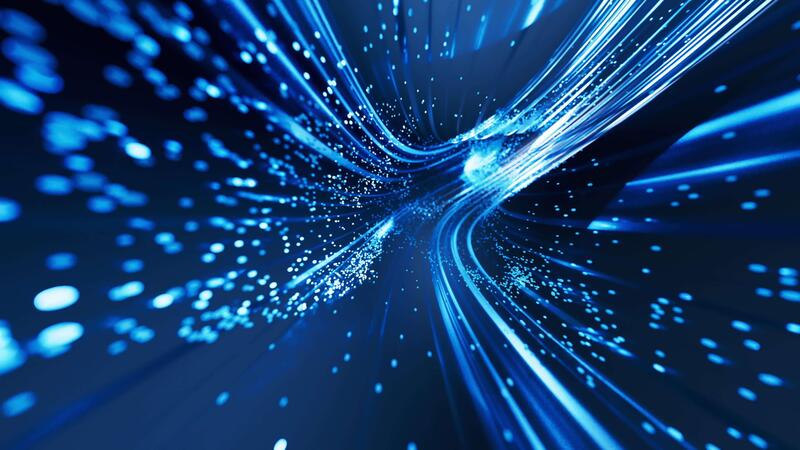 Triangle technology grid tunnel and flowing particles, 3d rendering. Pro Video