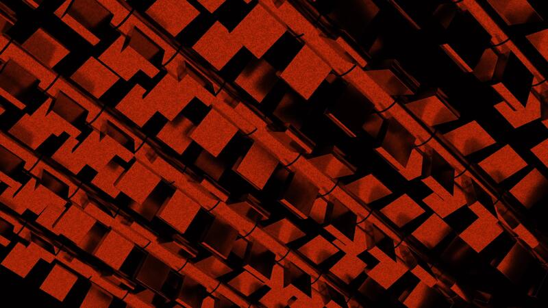3D mechanical system of rods and blades of red color. Design. Machine details spinning on a black background, seamless loop. Pro Video