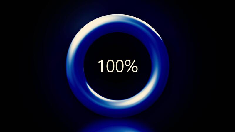 Blue ring with the countdown from 100 to 0 isolated on a black background. Motion. 3D pulsating circle with percentage. Pro Video