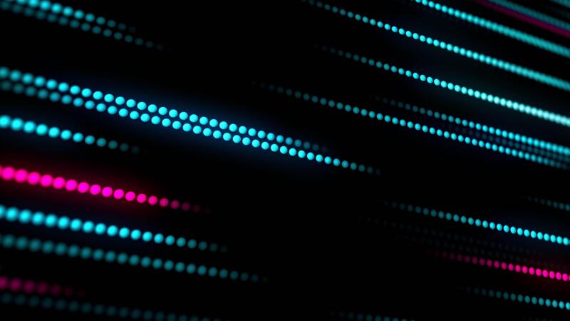 Stream of glowing lines from dots. Motion. Bright stream of binary neon lines on black background. Beautiful neon stream of dot digital lines Pro Video