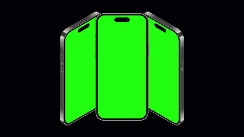 Smartphone animated mockup with green screen. Realistic smartphone mockup. Isometric smartphone animation. Smartphone device isometric technology. Transparent background with alpha channel Pro Video