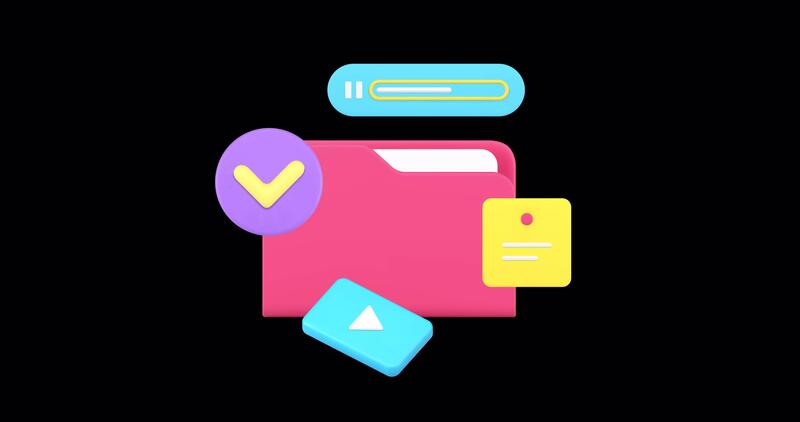 Cyberspace cloud computing data storage document folder multimedia content 3d icon animation with alpha channel Pro Video