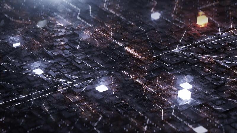 Digital background with neon circuit and cube Pro Video