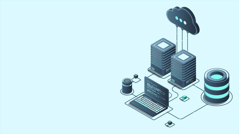 Cloud technology computing animation. Modern cloud technology. Data center isometric concept. Isometric cloud technology with datacenter. Web hosting concept. 4K animated in isometric style Free Video