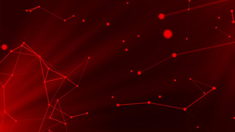 Blue and red background. Motion. A bright background on which there is an animation in which various parts with molecules and branches from them move around the background and spin. Free Video