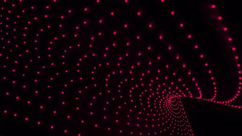 Curved 3d lines of dots move on black background. Design. Dots move in curved volumetric flow. Point flow with 3d effect and geometric curves in dark space Free Video