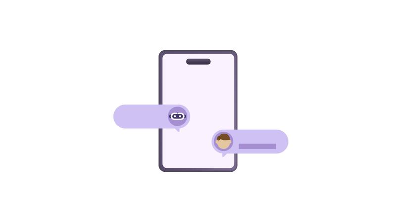 Man has a conversation with AI, bot in the smartphone concept application, 4K, 2D animation, transparent background Pro Video