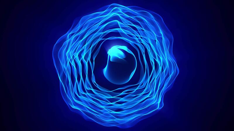 Blue particle waves moving around morphing sphere of energy. Abstract background for digital engineering, computer technologies and science fiction. Futuristic atom molecule animation. Loop, 4k, 60fps Pro Video