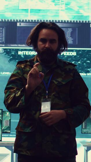 Vertical Command sergeant major employs high tech holograms to examine real time data for a mission, working on ways to protect the national coast line. Creating an attack plan. Camera B. Pro Video