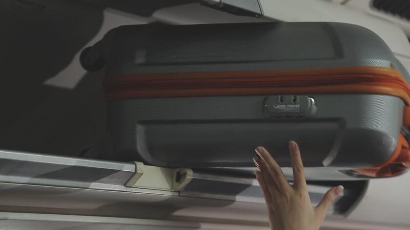 An Asian businesswoman in a semi-formal suit is using a tablet to read and analyze business data while traveling to a meeting in business class on a plane. Free Video