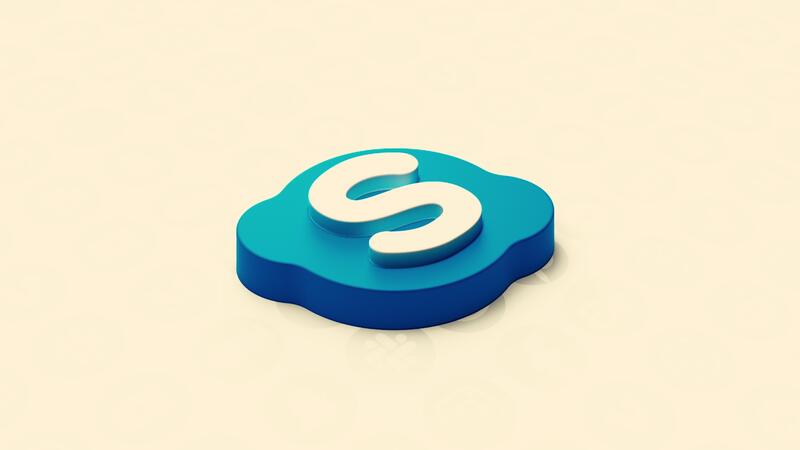 Appearance of 3d social network icon. Motion. Particles are collected in social network sign on surface. 3D animation of Skype icon