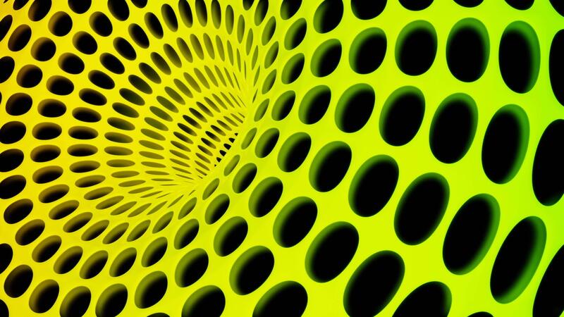 Red and yellow background.Design.A bright tunnel on which black circles in abstraction are moving forward. Pro Video