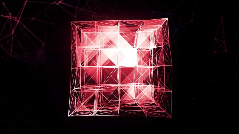 Transparent geometric shape.Motion.A dark background on which a thin white square from the grid is highlighted in different colors. Pro Video