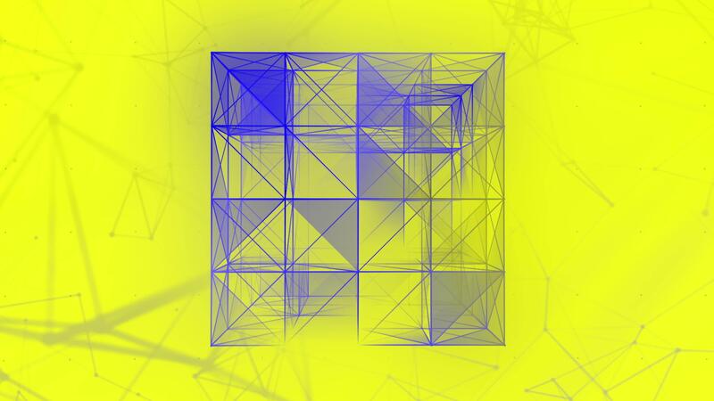 Transforming 3D cube silhouette from narrow lines and dots. Motion. Abstract geometric plexus figure on a colorful background. Pro Video