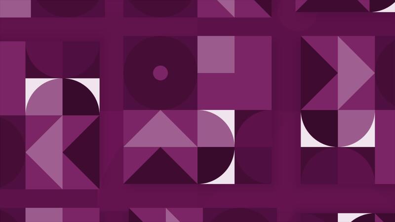 Geometric pattern with seamlessly looping circles, squares, and triangles. Motion. Modernist abstract background in purple tones. Pro Video