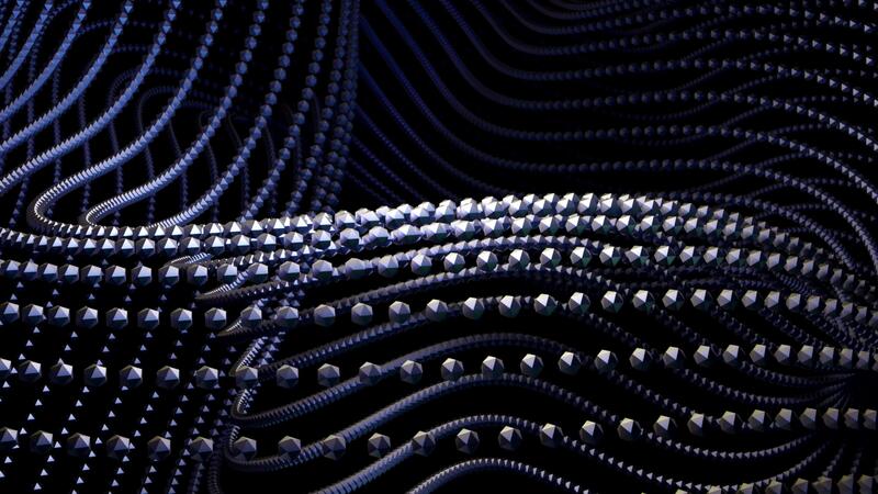 Abstract curving and spinning abstraction with rows of tiny particles on a black background. Design. Rotating shape of small points. Pro Video