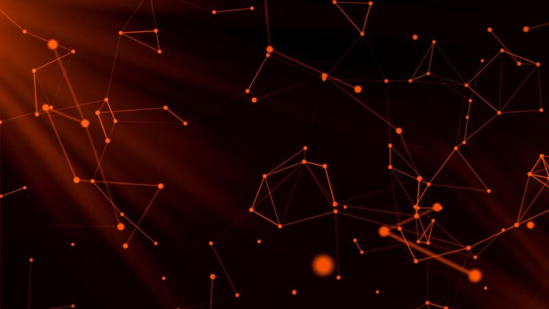 Red abstract background, plexus, technology concept. Motion. Connected dots and lines flying chaotically, seamless loop. Pro Video