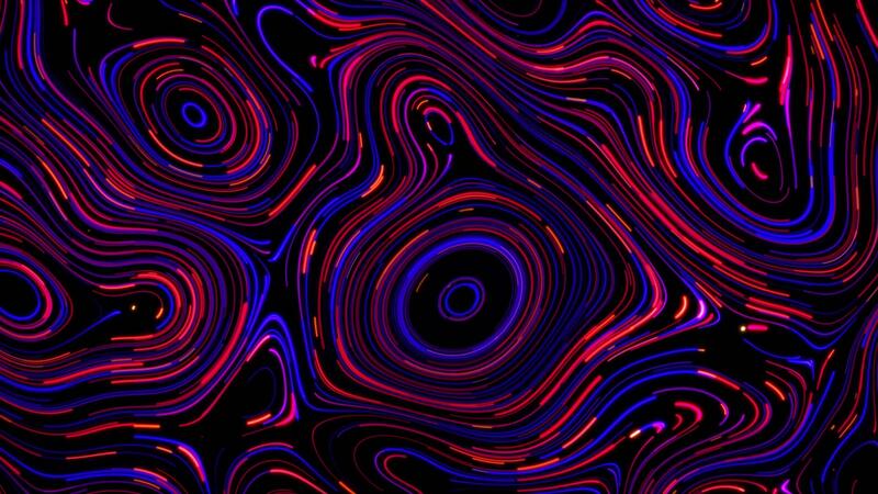 Neon lines background with randomly moving smooth curves in a shape of psychedelic pattern. Trippy animation for music festivals and abstract visualisations. Bright red and blue colors, 4k , 60 fps Pro Video