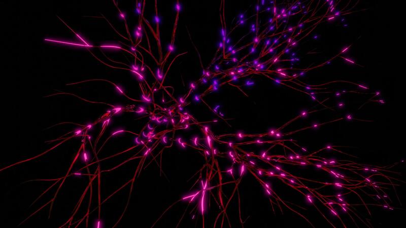 Neurons and neural connections, concept of science and medicine. Motion. Visualization og neuronal activity in the brain, neurogenesis, neurotransmitters, electricity in the brain, synapses. Pro Video
