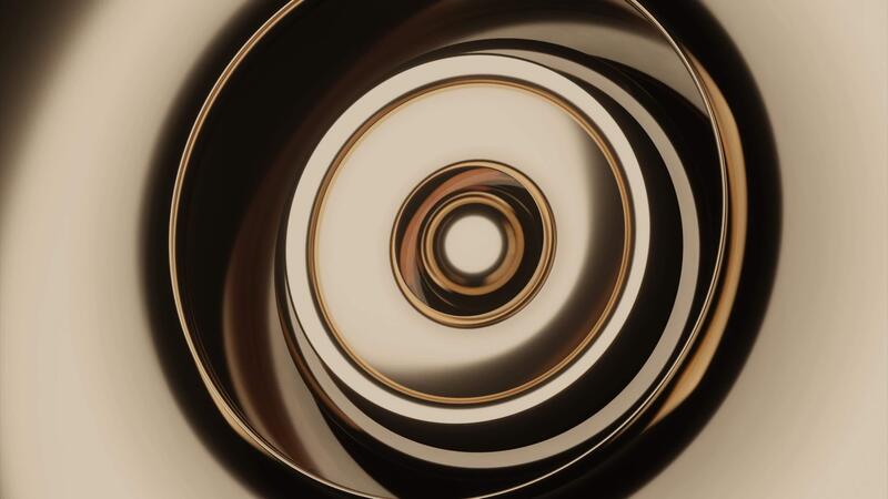 Abstract 3D pulsating liquid mixing substance. Design. Ring shaped pulsating metallic circles. Pro Video