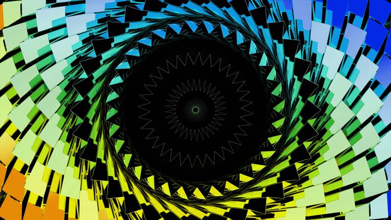 Motion graphics sci fi colorful spinning tunnel, seamless loop. Design. Pulsating kaleidoscopic pattern creating endless circles. Pro Video