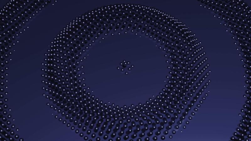 Abstract dark purple spreading circles of small metal balls one by one, seamless loop. Design. Moving round shaped objects of tiny dots. Pro Video