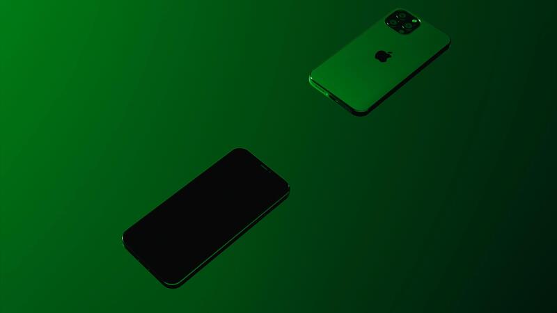 Two smartphones flying towards each other isolated on a dark gradient background. Design. Presentation of a new iphone devices. For editorial use only.