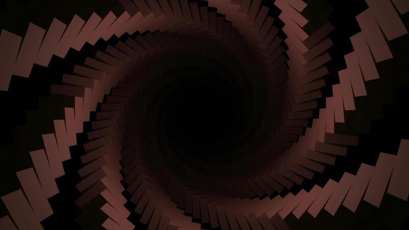 Abstract spiral shaped pattern with spinning bricks on a black background, seamless loop. Design. Slowly rotating colorful industrial whirl. Pro Video