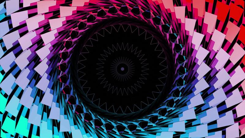 Motion graphics sci fi colorful spinning tunnel, seamless loop. Design. Pulsating kaleidoscopic pattern creating endless circles. Pro Video