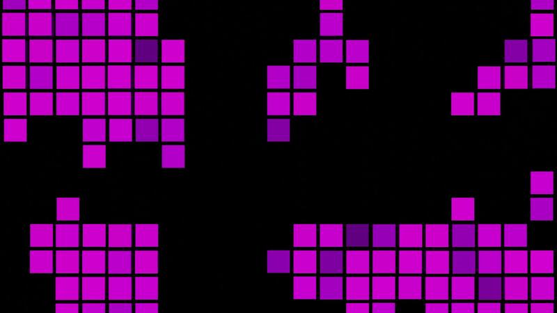 Abstract visualization of audio equalizer application screen on a black background. Design. Blinking and moving colorful squares. Pro Video