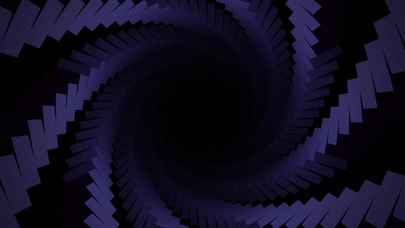 Abstract spiral shaped pattern with spinning bricks on a black background, seamless loop. Design. Slowly rotating colorful industrial whirl. Pro Video