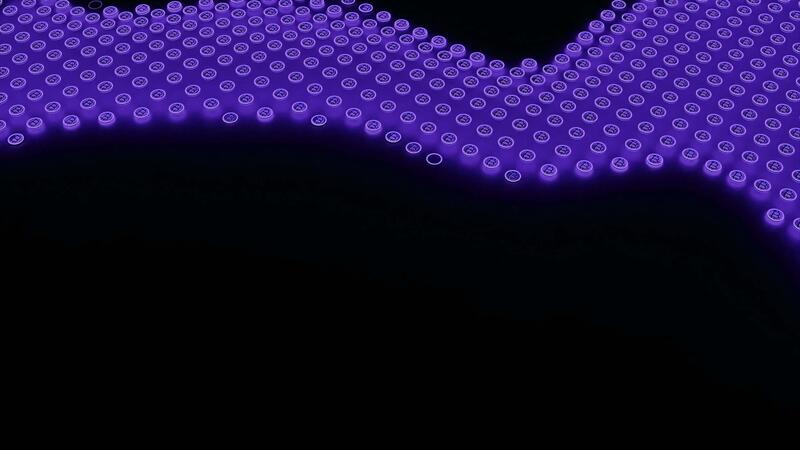 Abstract unusual spinning field of tiny bitcoin icons isolated on a black background, seamless loop. Design. Surface of round bitcoin symbols. Pro Video