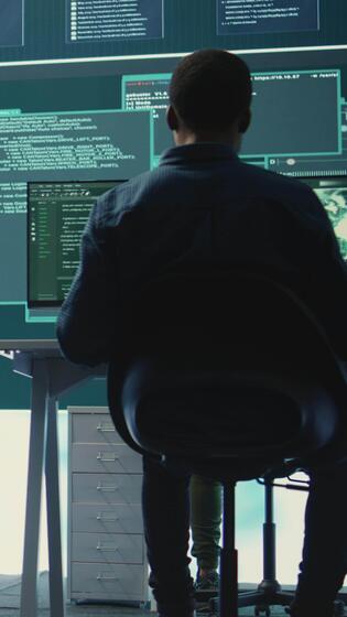 Vertical Governmental hacking group targeting sensitive information through high tech cyber attacks, digital espionage. Team of IT experts working on national security and data privacy servers. Camera B. Pro Video