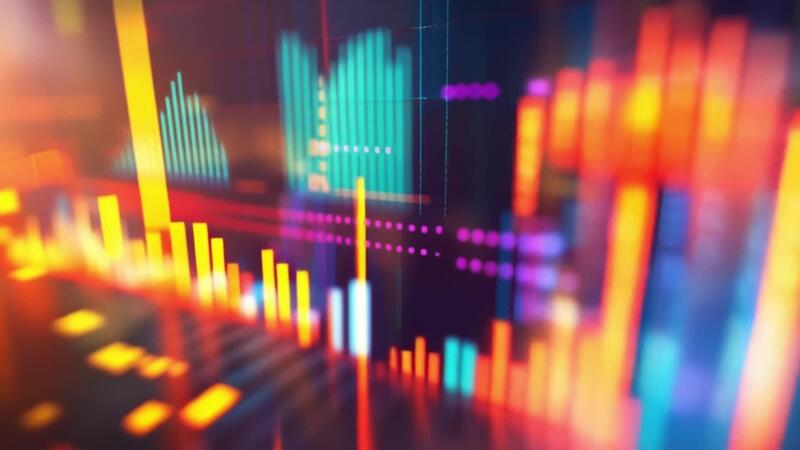 Dynamic digital chart with colorful bars and fluctuating data points Free Video