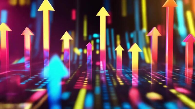Dynamic digital chart with colorful upward arrows and glowing data points Free Video