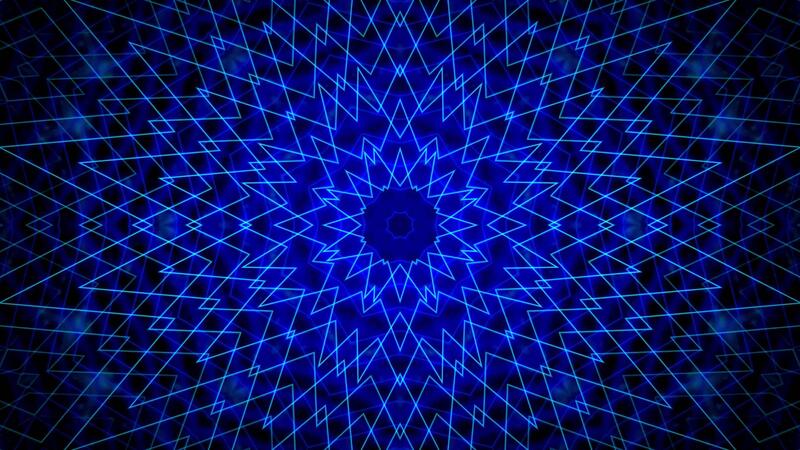 Seamless loop animation of blue mandala pulsating with shiny psychedelic patterns on a dark background. Hypnotic kaleidoscope for yoga art visualization and trance music festival performance. 4k 60fps Pro Video