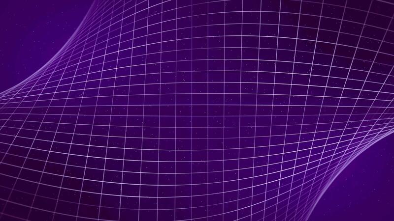 Futuristic technology grid made of soft glow purple lines and particle dust on a dark gradient background. Seamless looped animation of digital structure spinning in a cyber space. VJ loop 4k 60 fps Pro Video