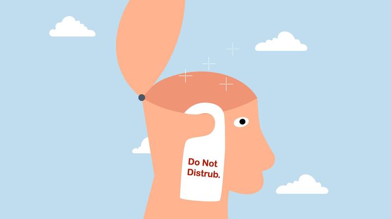 do not disturb in thinking, 4k animation of When you think of a business solution, human head is open with label Do not disturb. Free Video