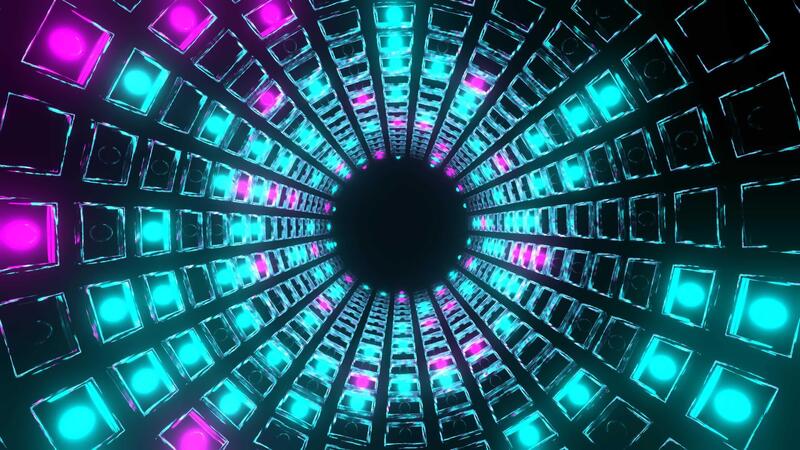 Pink and Cyan Strobe Mirrored Square Elements Tunnel Background VJ Loop in 4K Pro Video