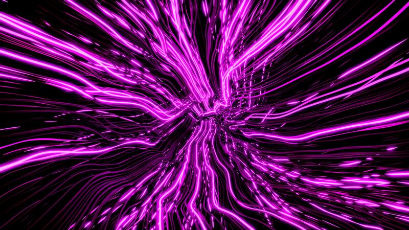 Purple bright loop. Design. Beautiful colorful background in abstraction where bright pink lines oscillate on a dark background. Pro Video