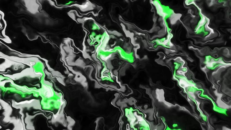 Green and yellow spilled paint spots. Motion. Dark background with light sparkling patterns made in computer graphics. Pro Video
