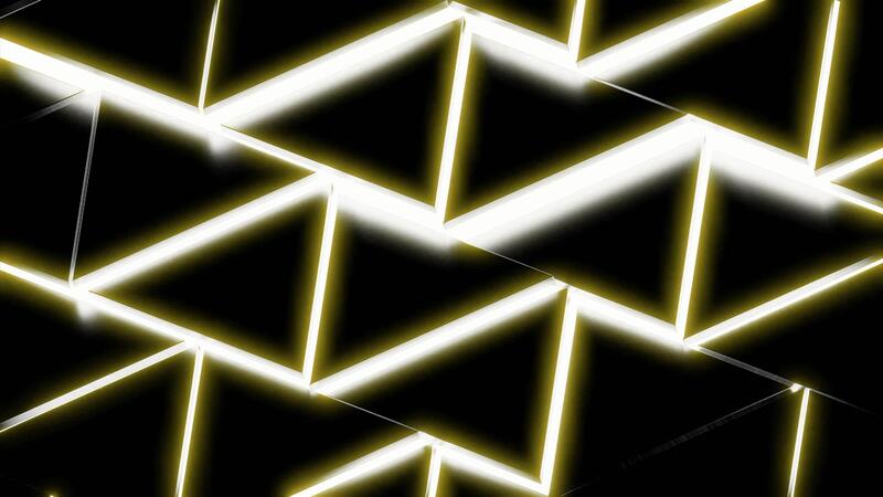 Abstract neon triangular shapes on a black background. Design. Short lines creating pattern with many triangles. Pro Video