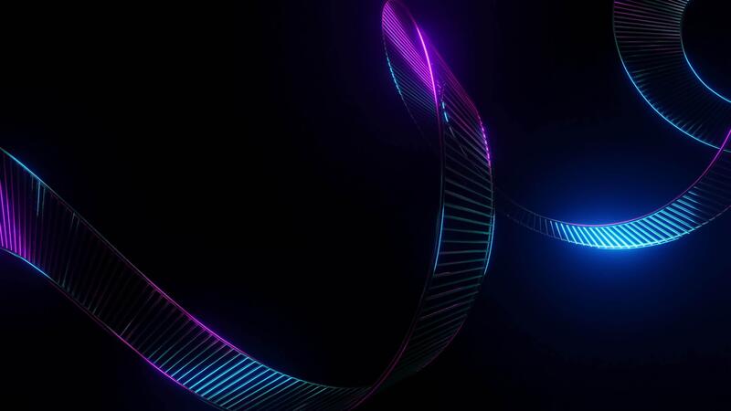 Abstract gradient flowing and rotating spiral on a dark background. Design. Striped spiral shape forming tunnel. Pro Video