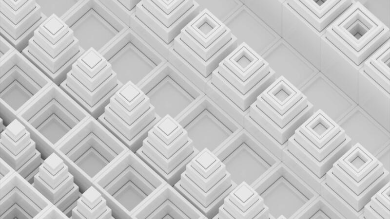 Abstract kaleidoscopic background with moving 3d squares forming pyramids. Design. Rows of up and down moving shapes. Pro Video